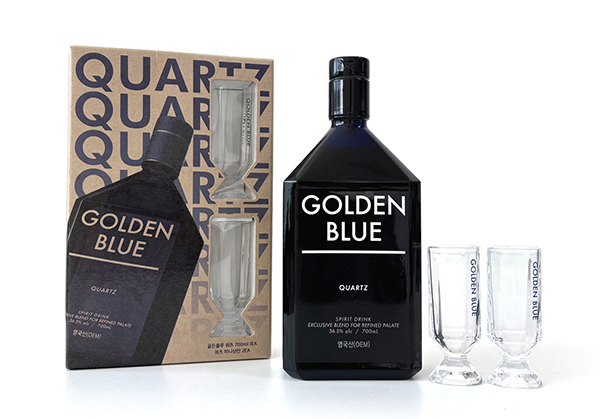 ‘골든블루 쿼츠 미니샷잔 패키지’는 700ml 용량의 ‘골든블루 쿼츠’ 1병과 52ml 미니샷잔 2개로 구성된 제품으로 ‘골든블루 쿼츠’ 출시 1주년을 기념해 기획됐다.