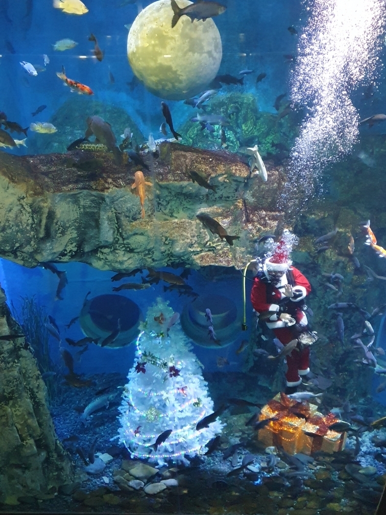 아쿠아리움은 앞서 11일에도 산타 이벤트를 진행했으며, 철갑상어, 쏘가리, 잉어 등 16종 6000여 마리 물고기가 있는 650t 규모 메인 수조 속에 산타가 등장하는 황홀한 풍경을 연출해 관람객들의 시선을 사로잡았다.