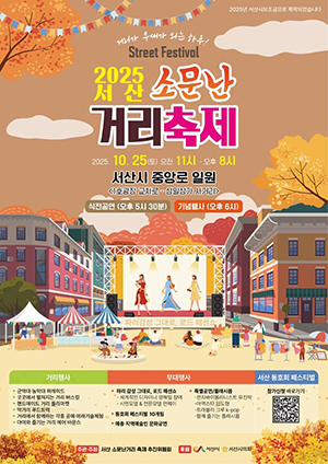 [문화투데이 장은영 기자] 서산시는 오는 25일 오전 11시부터 오후 8시까지 ‘2025 서산 소문난 거리 축제’를 개최한다고 20일 밝혔다.