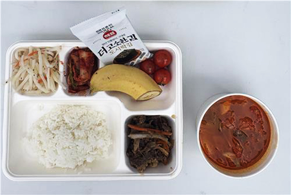 [문화투데이 김태균 기자] 쌀밥, 참치김치찌개, 배추김치, 불고기, 감자채볶음, 포장 김, 방울토마토, 바나나.