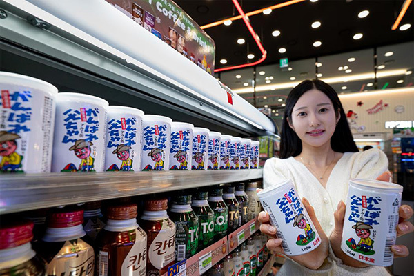 세븐일레븐은 180㎖ 용량 간바레오또상 캔을 온장고에 진열 판매한다.