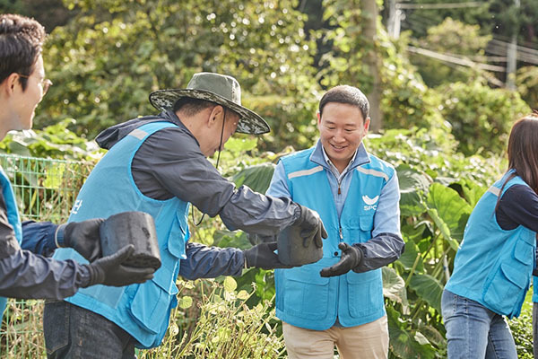 허희수 SPC 부사장과 도세호 SPC 대표이사 등 임직원 30여명은 지난 22일 서초구 전원마을 비닐하우스 단지에 방문해 연탄과 호빵을 직접 배달했다.
