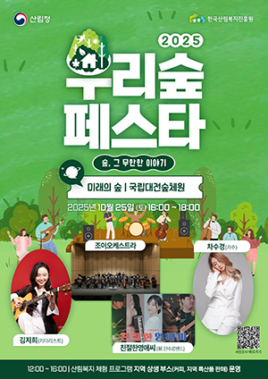 [문화투데이 장은영 기자] 한국산림복지진흥원은 25일 대전숲체원에서 '2025 우리숲페스타'를 개최한다고 24일 밝혔다.
