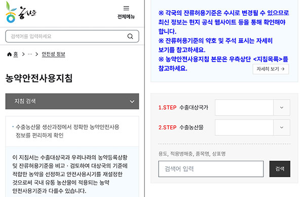 농약안전사용지침은 농업기술포털 '농사로'(nongsaro.go.kr)에서 확인할 수 있다.