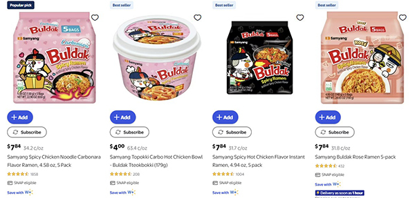 이에 따라 월마트에서 판매 중인 불닭볶음면 5개 들어있는 제품 가격은 6.88달러에서 7.84달러로 약 14.0% 올랐다.