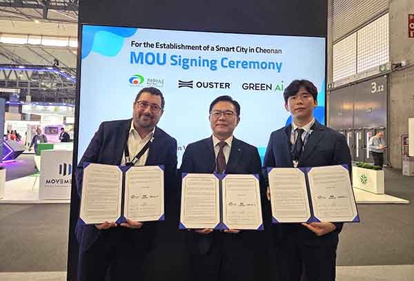 [문화투데이 장은영 기자] 충남 천안시는 지난 5일(현지시간) 스페인 바로셀로나에서 미국 라이다(LiDAR.자율주행체 센서) 전문기업 아우스터(Ouster), 국내 어반테크기업 ㈜그린에이아이와 글로벌 스마트도시 구축을 위한 업무협약을 맺었다고 6일 밝혔다.