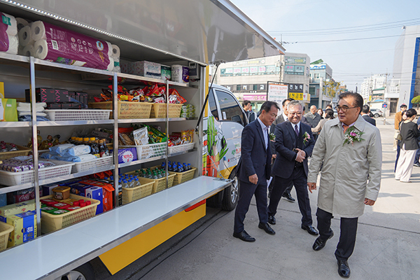 각종 식료품과 생활필수품을 실은 1t 탑차가 교통이 불편하고 상점이 부족한 마을을 하루 2∼3곳씩 돌며 물건을 배달·판매한다.