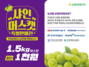농협경제지주는 샤인머스캣 1.5㎏ 상자당 1천원을 할인해 판매한다. 이번 행사는 준비한 물량 3만1천 상자가 소진될 때까지 진행한다.