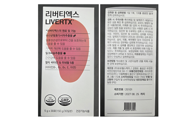 [문화투데이 황재연 기자] 식품의약품안전처는 건강기능식품전문제조업체인 ‘(주)유유헬스케어’가 제조한 ‘리버티엑스’에서 비소가 기준치보다 초과 검출되어 해당 제품을 판매 중단하고 회수 조치한다고 27일 밝혔다.