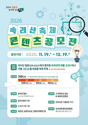 내년 여름(6∼7월)과 겨울(12∼1월) 속리산 일원에서 진행할 수 있는 축제 콘텐츠로, 보은군과 속리산의 정체성이 담겨야 한다.