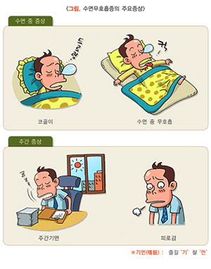 수면무호흡증은 잠자는 동안 호흡이 멈추거나 약해지는 현상이다. 호흡 장애가 시간당 얼마나 반복되는지에 따라 경증(시간당 5∼14회), 중등도(15∼29회), 중증(30회 이상)으로 분류된다.