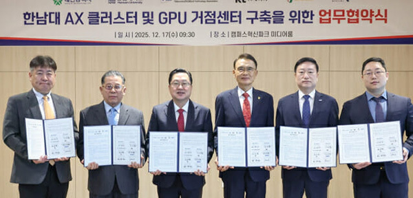 [문화투데이 장은영 기자] 대전시는 17일 한남대에서 한국정보통신기술협회, KT, 비케이비에너지, 엠아르오디펜스와 '한남대 인공지능 전환(AX) 클러스터 및 고성능 인공지능(AI) 그래픽처리장치(GPU) 거점센터' 구축을 위한 업무협약을 했다.
