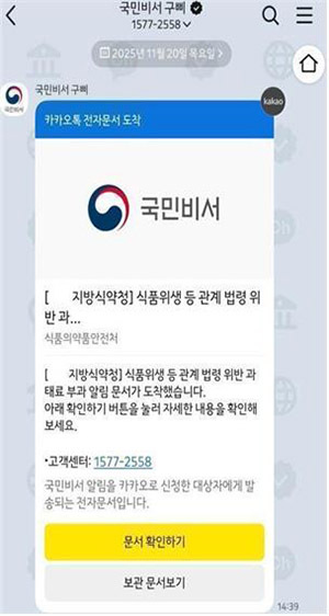 [문화투데이 황재연 기자] 식품의약품안전처는 내년부터 국민비서 구삐서비스를 통해 식품 영업자에게 식품 분야 '과태료 알림 서비스'를 제공한다고 18일 밝혔다.