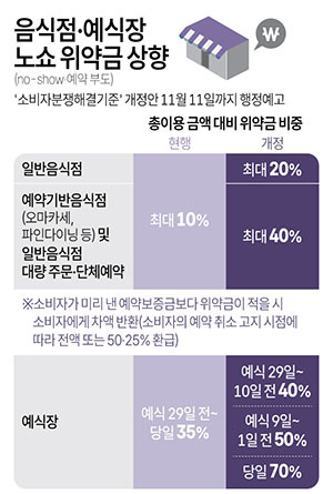예약 부도로 음식점이 보는 피해를 줄이도록 위약금 수준을 높였다.
