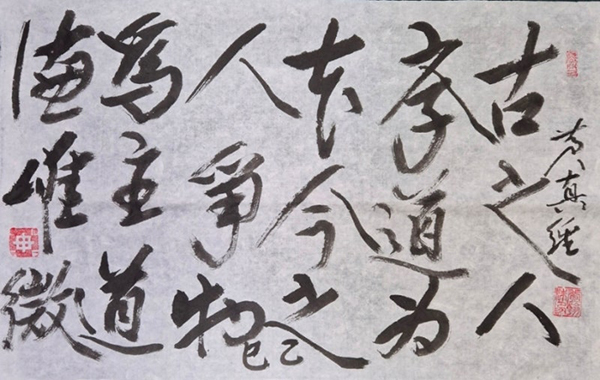 작품에 담긴 문구는 ‘고지인 학도위본(古之人 學道爲本), 금지인 쟁물위주(今之人 爭物爲主), 도덕유미(道德惟微)’로, “옛사람은 도를 배우는 것을 근본으로 삼았으나, 지금 사람은 물질을 다투는 것을 주장으로 삼으니, 도와 덕이 희미해졌다”는 뜻을 담고 있다.