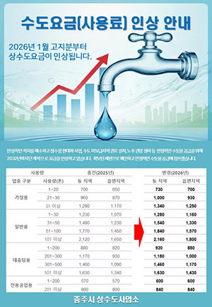 시 관계자는 "상수도 요금 조정은 노후 시설 개선과 안정적인 수돗물 공급을 위한 불가피한 조치"라며 "인상에 따라 사회적 배려계층을 위한 요금 감면 금액도 상향된다"고 말했다.