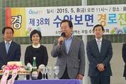 ▲이종배 국회의원, 조길형 충주시장, 김헌식 충주시의원충주시(시장 조길형) 수안보에서 제 38회 어버이날 기념 경로잔치가 8일 물탕공원에서 열렸다.이 행사에는 이종배 국회의원, 조길형 충주시장, 김학철 도의원, 김헌식 시의원, 김재식 수안보노인회장 등 수안보면민 500여명이 참석한 가운데 열렸다.▲수안보면 경로잔치이 날 행사는 내빈소개 및 개회를 시작으로 감사패전달, 내빈 합동 큰절 및 축하떡 나눔 등이 진행되어 수안보의 어르신들에게 즐거움을 선사했다.한편 수안보면은 인구 3,397명 중 27.8%인 947명이 노인인구로 구성되어 있다.▲수안보면 경로잔치▲수안보면 경로잔치