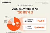[문화투데이 김태균 기자] 20·30대 직장인 10명 중 7명은 정년 연장이 필요하다고 생각한다는 조사 결과가 나왔다. 비즈니스 네트워크 서비스 리멤버를 운영하는 리멤버앤컴퍼니는 직장인 1천37명을 대상으로 진행하는 '정년 연장 인식 조사' 결과 응답자의 74%가 정년 연장이 필요하다고 답했다고 19일 밝혔다. 60대(80.8%)와 50대(77.9%)에서 정년 연장 찬성률이 높았는데 20대(67.9%)와 30대(70.4%)에서도 높은 찬성률이 나타났다. 이상적인 정년을 묻는 문항에서도 전체 응답자의 60.2%가 만 63∼65세를 적절한 정년으로 꼽았다. 이렇듯 직장인이 정년 연장을 원하는 가장 큰 이유는 경제적 불안감 때문이었다. 응답자의 39%는 노후 생활 안정 때문에, 17.8%는 국민연금 수급까지의 소득 공백 때문에 정년 연장을 원하는 것으로 집계됐다. 다만 정년 연장의 실행 방법에 대해서는 세대별로 의견이 엇갈렸다. 20대 응답자의 28.6%는 성과나 직무 중심의 임금 체계 개편을 선결 과제로 꼽았지만, 40대와 50대 응답자의 27%는 고령 인력의 생산성 유지를 위한 재교육을 1순위 과제로 골랐다. 주대웅 리멤버 리서치사업실장은 "정년 연장 논의의