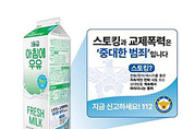 [문화투데이 김태균 기자] 경찰청과 남양유업은 우유 팩 측면에 스토킹과 교제폭력 근절 메시지를 담는 대국민 홍보 활동을 한다고 21일 밝혔다. '스토킹과 교제폭력은 중대한 범죄'라는 내용의 메시지는 남양유업의 '1등급 아침에 우유' 900㎖ 팩 140만개에 실린다. 제품은 다음 달 31일까지 6주간 판매된다. 경찰은 일상 속 친숙한 소비재를 통해 관계성 범죄에 대한 경각심을 높이려는 취지라고 설명했다. 남양유업은 2019년부터 우유 팩 측면 공간에 공익 메시지를 전달하는 '우유 팩을 빌려드립니다' 캠페인을 진행 중이다.