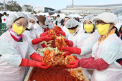 [문화투데이 장은영 기자] 충남지역 자원봉사자들이 지난해에 이어 올해에도 김장 김치를 담가 도내 취약계층을 돕는 나눔 활동을 이어갔다. 충남도는 18일 도청 남문 다목적광장에서 김태흠 지사와 정광섭 도의회 부의장을 비롯해 자원봉사자 700여명이 참석한 가운데 '2025 충남도 자원봉사 김장대축제'를 열었다. 올해로 2회째를 맞는 김장대축제는 소외된 이웃을 위한 나눔 문화를 확산하기 위해 마련됐다. 참석자들은 '함께하는 자원봉사, 함께하는 충청남도'를 슬로건으로 김장 김치 1만7천㎏(약 6천800포기·1천700상자)을 담갔다. 각 시·군 자원봉사센터는 김치를 홀로 사는 노인, 장애인 가구, 한부모가정 등 취약계층에 전달할 예정이다. 김태흠 지사는 "15개 시·군 자원봉사자가 한자리에 모이니 도가 하나로 뭉친 것 같다"며 "김장대축제가 어려운 이웃을 돌보는 문화를 널리 퍼뜨리는 계기가 되길 기대한다"고 말했다.