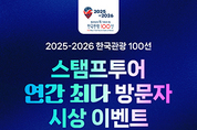 [문화투데이 김태균 기자] 한국관광공사는 오는 16일까지 '한국관광 100선 스탬프투어 최다 방문자 인증 이벤트'를 연다고 3일 밝혔다. 한국관광 100선에서 스탬프로 자신만의 여행 기록을 담은 국민이라면 누구나 참여할 수 있다. 참가자는 대한민국 구석구석 누리집 내 이벤트 페이지에서 본인의 스탬프 기록과 개인정보를 입력하면 된다. 스탬프 최다 인증자에게는 문화체육관광부 장관상을, 차순위자에게는 공사 사장상을 각각 수여한다. 부상으로는 국민관광상품권 각 100만원, 50만원이 지급된다. 허소영 관광공사 국민관광마케팅팀장은 "전국이 예쁘게 물든 11월에 한국관광 명소에서 단풍을 즐기길 바란다"고 말했다.
