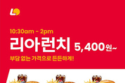 [문화투데이 구재숙 기자] 롯데GRS가 운영하는 버거 프랜차이즈 브랜드 롯데리아는 일부 품목을 할인하는 '리아런치' 운영 시간을 30분 확대한다고 17일 밝혔다. 리아런치의 새로운 운영 시간은 오전 10시 30분부터 오후 2시까지다. 리아런치 메뉴는 데리버거, 치킨버거, 미라클버거, 리아 사각새우 더블, 핫크리스피치킨버거, 모짜렐라 인 더 버거 베이컨 등 버거 세트 6종에 데리버거·치킨버거 싱글팩(치킨휠레 포함)까지 추가됐다. 가격은 5천400원(데리버거 세트)부터 9천100원(모짜렐라 인더 버거 베이컨 세트)까지다. 롯데리아의 대표 메뉴인 리아 불고기와 리아 새우 등은 리아런치에 포함되지 않는다. 롯데GRS 관계자는 "리아런치의 혜택을 더 많은 고객이 이용할 수 있도록 변화하는 점심 문화에 맞춰 운영 시간과 라인업을 확대했다"고 설명했다.