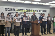 [문화투데이 장은영 기자] 충남시민사회단체연대회의는 "지방선거 전 대전·충남 행정통합의 졸속 추진을 중단하라"고 9일 밝혔다. 이 단체는 이날 충남도청 브리핑룸에서 기자회견을 열고 "이재명 대통령이 대전·충남 특별법 통과와 통합시장 선출을 공언한 후 행정통합 추진 속도가 빨라졌다"면서 "그러나 주민들은 여전히 충분한 정보 습득과 선택의 기회를 보장받지 못하고 있다"며 이같이 말했다. 이어 "주민들은 행정통합에 대한 검증과 판단의 시간이 주어지기 전에 찬성과 반대라는 선택지 앞에 놓였다"면서 "이것이 과연 지역과 주민을 위한 결정인가"라고 반문했다. 또 "행정통합의 필요성과 효과, 위험성은 제대로 검토되었는지, 통합이 정말 지방균형발전의 유일하고 확실한 방법인지 묻고 싶다"고 덧붙였다. 이들은 "행정통합은 충분한 정보 공개와 숙의 과정이 보장되어야 한다"면서 "균형발전이라는 정치적 수사가 아니라 타당한 근거가 제시돼야 한다"고 목소리를 높였다.