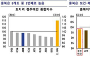 [문화투데이 황재연 기자] 충북의 정주 여건은 전국적으로 볼 때 안전과 보건·복지 시설에 대한 접근성이 떨어지는 것으로 나타났다. 12일 한국은행 충북본부 김상미 과장이 '충북지역 정주 여건 평가 및 시사점'을 주제로 작성한 보고서에 따르면 충북의 정주 여건 종합지수는 97.8로 수도권과 광역·특별시를 제외한 전국 8개 도 지역 중 3번째로 높았다. 정주 여건 평가는 7개 분야에 대한 접근성과 인프라, 예산 비율 등을 지수로 산출하는 방식으로 이뤄졌다. 충북은 임금·일자리 1위, 교육과 문화·여가 2위, 주택·교통 3위를 차지했지만, 보건·복지와 안전 분야는 각각 7위와 6위로 평균보다 낮았다. 도내 시군별로는 청주가 종합지수 108.8로 가장 높았고 진천, 충주, 증평, 음성, 제천, 옥천, 보은, 영동, 괴산, 단양 순으로 뒤를 이었다. 보고서는 정주 여건 종합지수가 높은 지역일수록 인구 증가율이 큰 것으로 나타났다고 분석했다. 한국은행 충북본부 관계자는 "충북은 인구 증가를 위해 안전 분야의 정주 여건 개선에 큰 노력을 기울일 필요가 있다"며 "소방서, 경찰서, 옥외대피소 등의 시설을 확충하고, 생활밀착형 범죄예방 환경을 조성하는 등 지역민이 안정적인