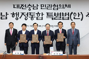 [문화투데이 장은영 기자] 대전시와 충남도의 행정통합을 위한 입법 절차가 본격화됐다. 30일 대전시와 충남도에 따르면 국민의힘 성일종 의원은 '대전충남특별시 설치 및 경제과학수도 조성을 위한 특별법안'을 대표 발의했다. 장동혁 의원 등 국민의힘 의원 45명이 공동발의에 참여했으나 더불어민주당 의원들은 이름을 올리지 않았다. 특별법안은 '대한민국 경제과학수도 대전충남특별시'라는 비전을 내세우며 각종 특례 조항을 담은 296개 조문과 부칙으로 구성됐다. 대전과 충남이 생활권·경제권·교통망을 사실상 공유하고 있는 현실을 반영해 행정체계 통합과 지방분권 강화, 신성장동력 확보를 목표로 내세웠다. 주요 내용은 대전충남특별시 설치 및 운영, 자치권 강화, 경제과학수도 조성, 대전충남특별시민의 삶의 질 제고 등을 담고 있다. 두 시도는 특별법안이 연내 국회를 통과해 내년 7월 대전충남특별시가 공식 출범할 수 있도록 행정력을 집중하는 한편 여야 정치권의 지원도 요청할 방침이다. 이장우 시장은 "수도권 일극 체제 극복 및 충청권 경쟁력 확보를 위해 통합은 시대적인 소명"이라며 "대전과 충남의 행정통합은 단순한 행정구역 개편이 아니라 국토 균형발전과 대한민국 미래 100년을