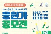 [문화투데이 장은영 기자] 2027 충청 유니버시아드대회 조직위원회는 대회 성공개최와 국민적 관심을 높일 공식 응원가를 공모한다고 25일 밝혔다. 조직위는 남녀노소 누구나 쉽게 따라 부르며, 선수단과 관람객이 함께 호흡할 수 있는 곡을 발굴해 대회 기간 전 세계인과 공유할 계획이다. 공모 분야는 ▲ 직접 창작 응원가 ▲ 인공지능(AI) 활용 응원가 등 두가지다. 자세한 내용은 대회 공식 누리집(www.chungcheong2027.com)에서 확인하면 된다. 오는 11월 3일부터 9일까지 국민 누구나 도전과 혁신의 메시지를 담은 2분 30초∼3분 분량의 응원가를 만들어 제출하면 된다. 심사 결과는 11월 21일 발표한다. 총상금은 1천200만원 규모로, 수상자에게는 상금과 대회 개막식 입장권 2장을 지급한다.