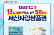 [문화투데이 장은영 기자] 충남 서산시는 추석을 맞아 다음 달 서산사랑상품권 1인당 월 구매한도를 50만원(기존 40만원)으로 확대한다고 26일 밝혔다. 서산시는 이번에 총 150억원 규모의 서산사랑상품권을 발행할 계획이다. 서산사랑상품권은 13% 할인받아 구매할 수 있으며, 모바일(카드형) 상품권으로 결제하면 5%를 추가 환급받을 수 있다. 이완섭 시장은 "추석 명절 시민의 가계 부담을 덜고, 물가 상승과 경기 침체로 위축된 소비를 촉진해 소상공인 매출 및 골목상권 활성화에 도움이 되길 바란다"고 말했다.