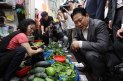 [문화투데이 장은영 기자] 국민의힘 장동혁 대표가 내달 초순 추석 연휴를 앞두고 대전 전통시장을 찾았다. 장 대표는 25일 오전 박준태 비서실장, 정희용 사무총장, 최보윤 수석대변인 등과 함께 대전중앙시장을 방문해 김밥·오이·옛날 과자 등을 사면서 상인들과 인사를 나눴다. 충남 보령 출신인 그는 시장의 만둣집 사장에게 "요즘 힘들지 않으시냐"고 물으며 "제가 대전에서 정치를 시작했다. 갈수록 전통시장이 힘들다. 국민의힘이 전통시장 살리기 위해 노력할 테니 더 힘내달라"고 말했다. 그는 온누리상품권을 내고 야채·고기 만두를 샀다. 장 대표는 또 "지금이 제일 힘들다. 장 대표가 미국에 가서 관세 낮추고 경제를 살려달라"는 다른 상인의 말에 "더 신경 쓰겠다. 협상 잘하라고 하겠다"며 답했다. 장 대표가 30분가량 시장을 둘러보는 동안 '실제로 보니 잘생겼다', '사진 찍어달라'며 인사를 건네거나 악수를 청하는 시민들도 있었다. 이에 장 대표는 "잘 할게유", "테레비(텔레비전)가 영 시원찮아서 그려", "사진 10장은 찍어야겄어"라고 호응하면서 특유의 충청도 사투리로 친밀감을 표시하기도 했다. 그는 "정쟁만 하지 말고 국회에서 힘을 써달라", "그만 좀 싸워라