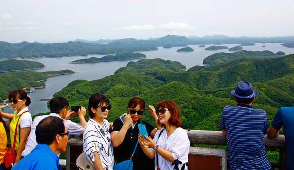 1박 2일 간 우리가 들린 대마도 주요 명소로는 바닷물이 맑은 미우다 해변, 리아스식 해안을 조망하는 에보시 전망대, 부산이 보인다는 팔각정의 한국관, 러시아함대를 격파한 만제키바시 해협, 그리고 와타즈미 신사, 시내의 팔번궁 신사와 조선통신사가 묵었던 객사와 사찰, 덕혜옹주 기념비가 있는 가미자카 공원 등이었다.