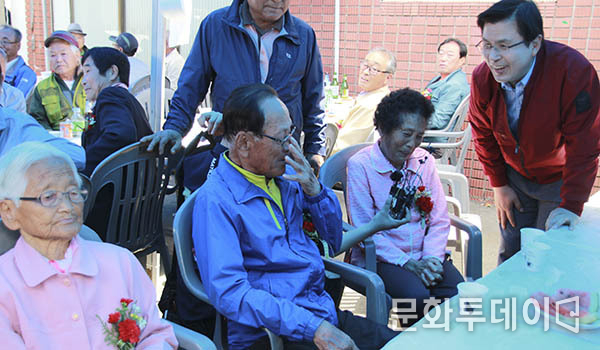 [문화투데이 = 홍성욱기자] 황교안 자유한국당 대표는 8일 어버이 날을 맞아 경남 통영시 광도면 노산마을 경로위안잔치에 참석, 조명순(95) 할머니 가슴에 카네이션을 달아주면서 “앞으로도 오래 오래 사셨야 합니다”라고 말하고 있다.