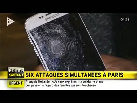 현지 방송 아이텔(i-tele)은 실베스트르라는 남성과의 인터뷰를 통해 이같은 사실을 전했다. 실베스트르는 인터뷰에서 그는 “폭발의 순간 귀에 대고 있던 삼성폰이 총알파편이 머리를 관통하는 것을 막아주었다"고 말했다.
