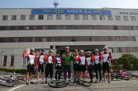 대한민국 의병도시 협의회(회장 이근규) 자전거 순례단이 27일 제천시청 앞 시청광장에서 5박6일간의 500km 대장정 출발식을 가졌다.