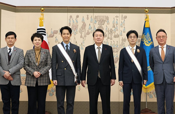 [문화투데이 구재숙 기자] 윤석열 대통령은 27일 오후 용산 대통령실에서 '오징어게임'으로 에미상을 수상한 황동혁 감독과 배우 이정재 씨에게 각각 금관문화훈장을 수여했다.