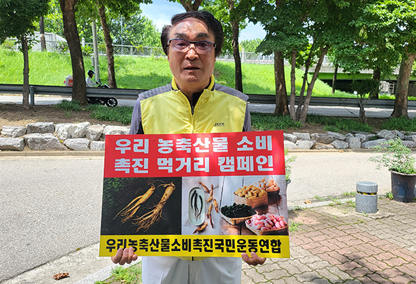 [문화투데이 구재숙 기자] 충북 대표 사회 문화단체 '충북아리랑 문화예술단' 송면섭 단장은 26일 푸드투데이 서울본사에서 우리 농축산물 소비촉진 국민운동 연합(회장 이완영)이 추진하는 범 국민 우리 농산물 소비촉진 릴레이 캠페인에 동참했다.