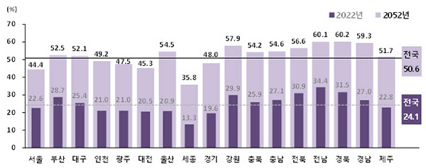 2052년 65세 이상 고령자 가구 비중은 전남, 경북 등 11개 시도에서 50% 넘는다.