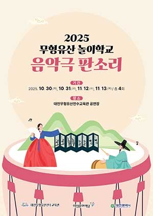 [문화투데이 장은영 기자] 대전문화재단이 운영하는 대전무형유산전수교육관은 무형유산 놀이학교인 '음악극 판소리' 프로그램에 참여할 학교를 선착순 모집한다고 1일 밝혔다.