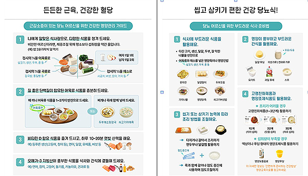 노인의 날을 맞아 제작된 이번 자료엔 일반인은 물론 혼자 생활하는 노인들도 쉽게 이해할 수 있게 올바른 혈당 측정법과 저혈당 대처법, 간편한 건강 밥상, 맞춤형 운동법 등의 정보가 담겼다.