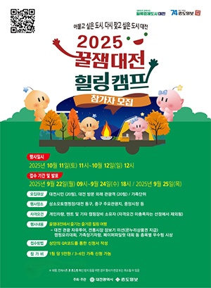 [문화투데이 장은영 기자] 대전시는 지역 관광지와 캠핑장을 연계한 숙박형 체험 프로그램인 '2025 꿀잼대전 힐링캠프'(1회차)를 오는 11∼12일 동구 상소동 오토캠핑장에서 개최한다.