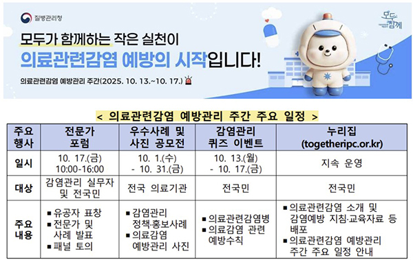 질병청은 의료 서비스 이용 과정에서 발생하는 감염의 예방·관리 중요성을 알리기 위해 2023년부터 10월 셋째 주를 특별 주간으로 지정해왔다.