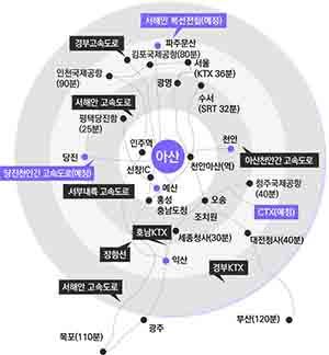 아산은 서울·수원·대전 등 주요 도시와 인접한 데다 인천공항·청주공항·평택당진항 등과도 가까워 글로벌 물류 거점으로 유리한 위치를 확보하고 있다.