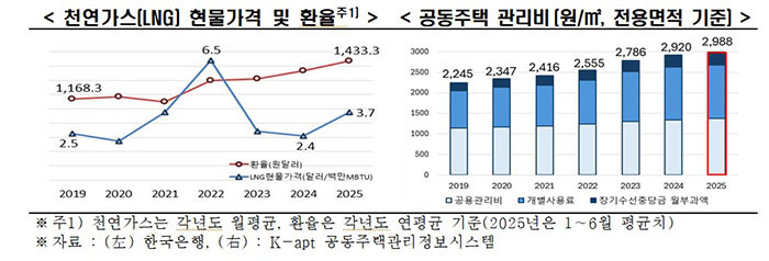 공동주택 관리비는 2019년 ㎡당 2천245원에서 올해 2천988원으로 33.1% 증가한 것으로 나타났다.