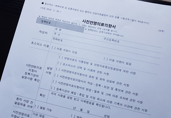 연명의료 결정은 무의미한 생명 연장만을 목적으로 하는 의료행위를 시작하지 않거나 중단하는 결정을 뜻한다. 인위적으로 생명을 단축하지도 연장하지도 않고, 자연스럽게 죽음에 이르겠다는 것이다.
