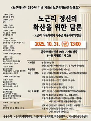 그러면서 "이번 포럼은 노근리 정신을 문학·미술 등 인문 예술 영역으로 확장하는 새로운 시도로 학제 간 융합을 통해 평화 담론의 지평을 넓히고, 다양한 세대와 소통할 수 있는 문화적 접근"이라고 말했다.