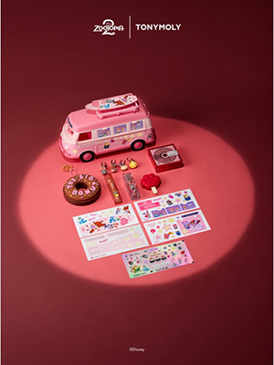 토니모리의 인기 색조 제품군에 주토피아 캐릭터 주디와 닉 일러스트를 디자인하고 도넛과 막대 아이스크림 등 주토피아 아이템을 화장품 용기로 구현했다.