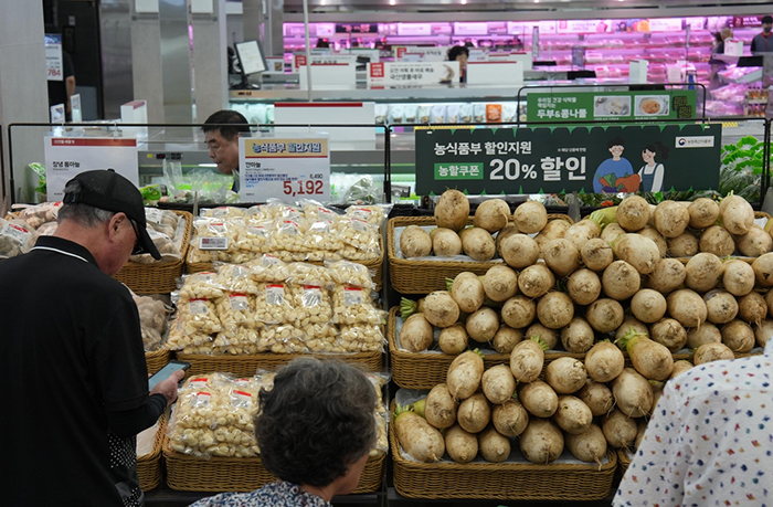 롯데마트는 같은 기간 엘포인트 회원을 대상으로 '농식품부 할인쿠폰'(20% 할인) 행사를 열고 배추 세 포기를 6천원 미만에 팔고 홍갓(600g)과 청갓(600g)을 각각 4천원 미만에 판매한다.