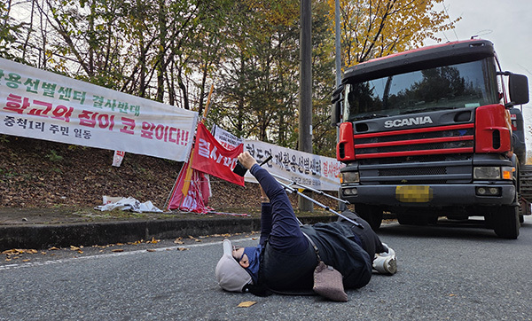 이들은 공사 착공일인 지난 7일부터 신축 부지 진입로를 막고, 건설장비 진입을 못 하게 하고 있다.